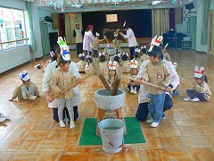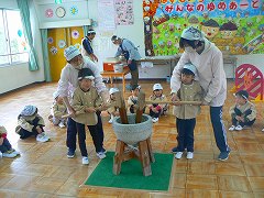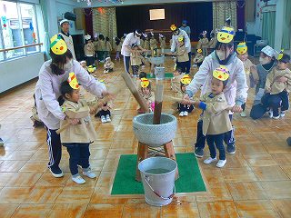 おもちつきの様子  芥見幼稚園  2023年12月1日