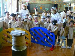 ヨイショ、ヨイショ、ヨイショー! ちからいっぱい おもちつき。