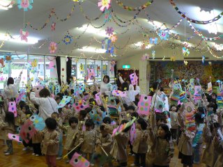 一人ひとりのカラフルな元気な鯉のぼりで、こどもの日をお祝いしました。