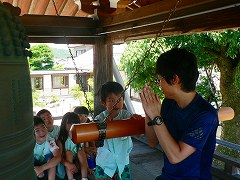 平和をねがい、ひとりひとり鐘をつきましょう。
